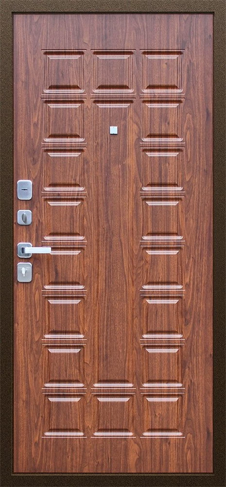 Надежная входная Дверь Спартак Орех темный премиум класса по цене 34 199 руб. Большая толщина стали защитит от проникновения в ваш дом, квартиру или коттедж. Используется очень качественная фурнитура: замки, цилиндры, ручки, защелки. Покрытие и отделка двери изготовлено под внимательным контролем производителя. Дверь имеет долгий срок службы и гарантию.
