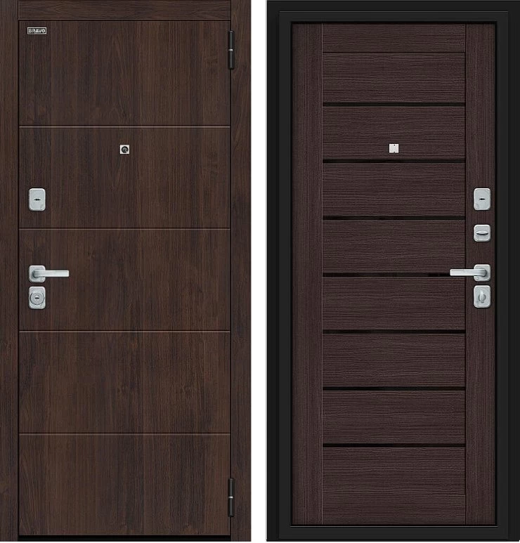 Надежная входная Дверь Браво Прайм/BChrome Almon/Wenge Melinga премиум класса по цене 39 999 руб. Большая толщина стали защитит от проникновения в ваш дом, квартиру или коттедж. Используется очень качественная фурнитура: замки, цилиндры, ручки, защелки. Покрытие и отделка двери изготовлено под внимательным контролем производителя. Дверь имеет долгий срок службы и гарантию.